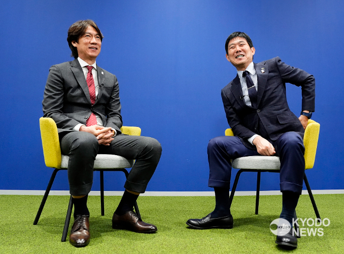| 대담 중 | 선수 시절 J리그 인연 회상 및 한일전 라이벌 구도의 긍정적 영향 동의 | 두 감독의 공동 발언 |