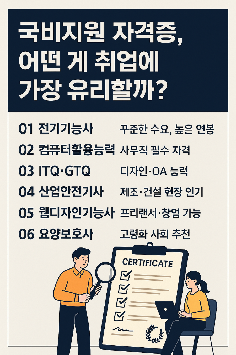 | 국민내일배움카드 | 직업 능력 개발을 위한 훈련비 지원 확대 | 최대 700만원 (기본 500만 + 추가 200만) | 만 15세 이상 실업자, 청년 구직자, 재직자(소득 기준), 국민취업지원제도 참여자 등 | IT·디지털, 회계·사무, 보건·복지 등 다양한 직업훈련, 훈련장려금 지급 |