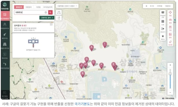 | 2025년 8월 5일 현재 | 구글, 한국 정부에 '가림 처리된 위성사진 구매' 방안 논의 중. | 구글 입장 |